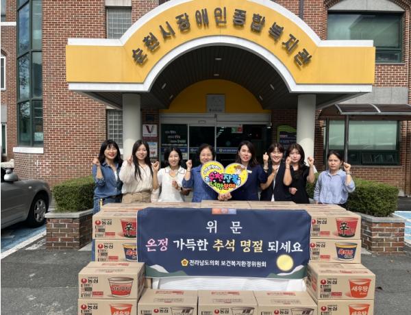 [중앙뉴스라인, 김민수기자] 전라남도의회 한숙경 의원(더불어민주당·순천7)은 9월 22일 추석 명절을 앞두고 순천시 서면에 위치한 순천시장애인종합복지관을 방문해 위문품을 전달하고 관계자들을 격려했다.