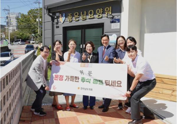 [중앙뉴스라인, 김민수기자] 전라남도의회 강문성 기획행정위원장(더불어민주당, 여수3)은 지난 9월 23일 추석 명절을 앞두고 여수시에 소재한 좋은날요양원과 여수농아원 시설을 방문해 위문품을 전달하고 시설관계자에게 감사와 격려의 마음을 전했다.