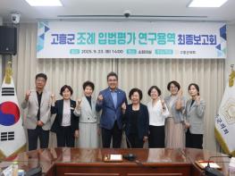 [중앙뉴스라인, 전은희기자] 고흥군의회는 23일 군의회 1층 소회의실에서 고흥군 조례 입법평가 위원회(위원장 조영길)를 열고 연구용역 최종보고를 청취한 뒤, 결과를 심사하며 향후 조례 정비 방안을 논의했다.