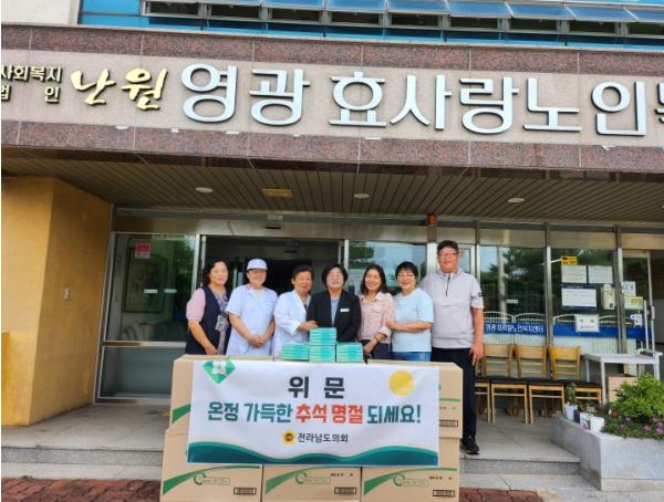 [중앙뉴스라인, 김민수기자] 전라남도의회 오미화(진보당·영광2) 의원이 추석 명절을 앞둔 9월 24일, 영광군 법성면 ‘영광효사랑노인복지센터’를 방문해 어르신들과 종사자들을 격려하고 위문품을 전달했다.