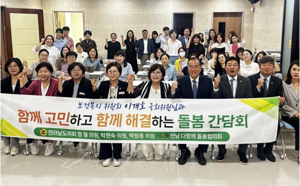 간담회에는 이개호 국회의원, 오미화ㆍ한숙경 전남도의원, 전남 다함께돌봄협의체 등 40여 명이 참석해 현장의 어려움과 제도 개선 방안을 함께 모색하기 위해 마련됐다.