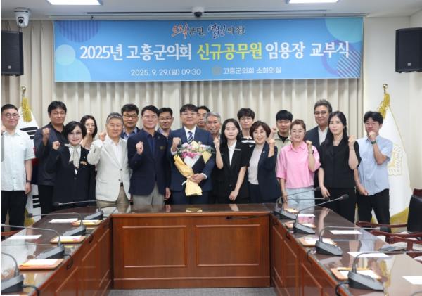 [중앙뉴스라인, 전은희기자] 고흥군의회는 소회의실에서 2025년 9월 29일 자 인사발령에 따른 신규 공무원 임용장 교부식을 가졌다.