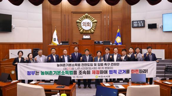 나주시의회, ‘농어촌기본소득법 전면도입 및 입법 촉구 건의안’ 채택