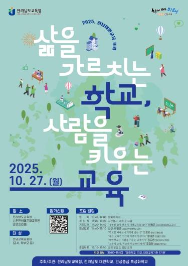 [중앙뉴스라인, 김민수기자] 전라남도교육청은 오는 27일 순천만생태문화교육원에서 학부모·교사가 참여하는 ‘2025 전남 대안교육 포럼’을 개최한다.