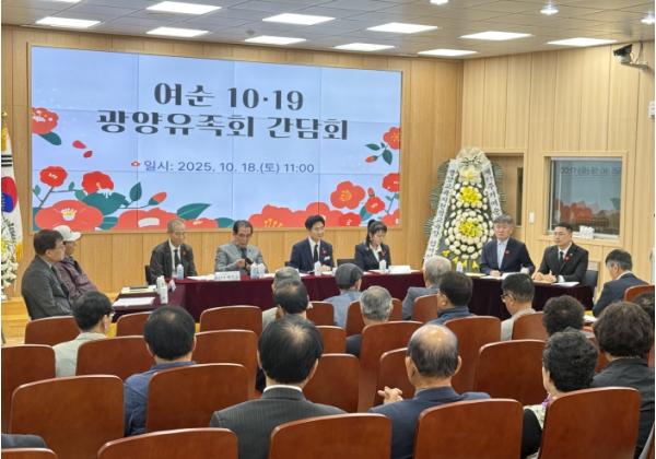 추념식 이후 열린 간담회에는 교육감, 광양유족회, 광양교육지원청 교육장 등 60여 명이 참석해, 역사왜곡(의심) 도서 관련 경과와 재발 방지 대책을 공유하고, 유족들의 의견을 수렴했다.