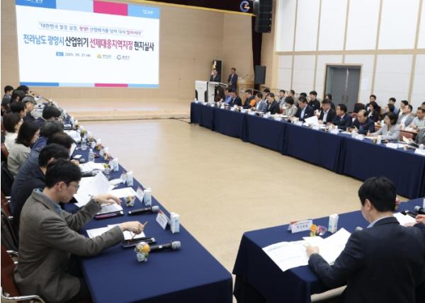 [중앙뉴스라인, 김민수기자] 전라남도는 21일 광양시에서 열린 산업위기 선제대응지역 지정 현지 실사에서 철강산업의 구조적 위기 상황을 설명하고 정부의 적극적인 지원과 조속한 지정을 강력히 요청했다.