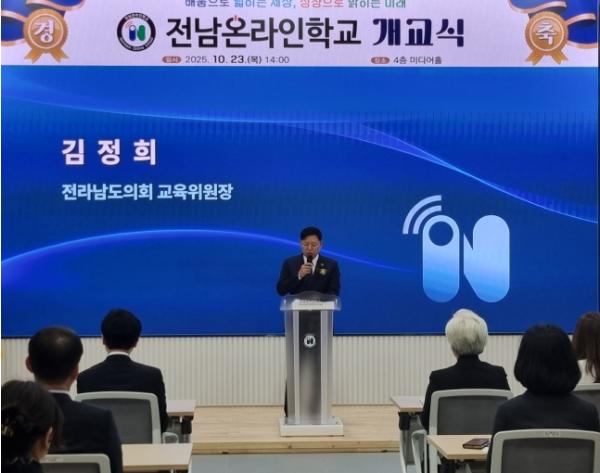 이날 김정희 위원장은 축사를 통해 “전남온라인학교는 단순한 온라인 학습공간이 아니라, 전남의 고등학생들이 시공간의 제약 없이 동일한 교육 기회를 누릴 수 있도록 만든 혁신의 결실”이라며 “이는 교육의 지역적 한계를 넘어 진정한 ‘배움의 평등’을 실천하는 전남교육의 새로운 도전”이라고 말했다.