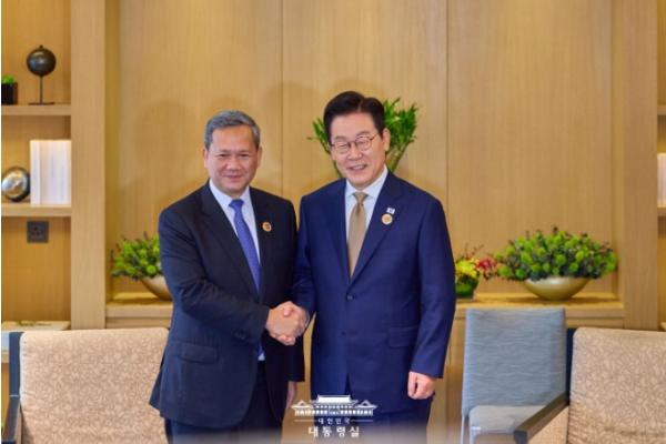 [중앙뉴스라인, 우제헌기자] 이재명 대통령은 27일 오전 제47차 아세안 정상회의 참석을 계기로 ‘훈 마넷’ 캄보디아 총리와 취임 후 첫 양자회담을 가졌다.