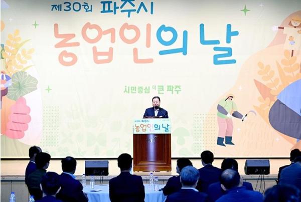 김경일 파주시장은 “고물가, 이상기후, 농촌 고령화 등 어려운 여건 속에서도 안전한 먹거리를 위해 파주시 농업을 지켜온 농업인 여러분께 깊은 감사와 존경의 마음을 전한다”라며 “앞으로도 농업인의 안정적 소득과 지속 가능한 농업 발전을 위해 다양한 지원 정책 마련에 최선을 다하겠다”라고 말했다.
