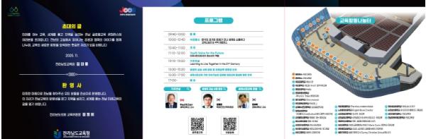 전남교육청은 이번 행사를 계기로 각국의 교육 사례를 공유하고, 상호 협력과 공생의 교육 생태계를 조성함으로써‘지역에서 세계로, 세계에서 미래로’ 나아가는 교육 비전을 구체화할 계획이다.