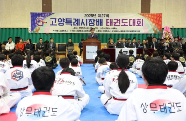 [중앙뉴스라인, 우제헌기자] 2025년 제27회 고양특례시장기 태권도대회가 16일 고양어울림누리 체육관에서 개최됐다. 이동환 고양특례시장은 “갈고닦은 실력과 기량을 유감없이 발휘해 후회 없는 경기를 펼쳐주길”이라고 말했다.
