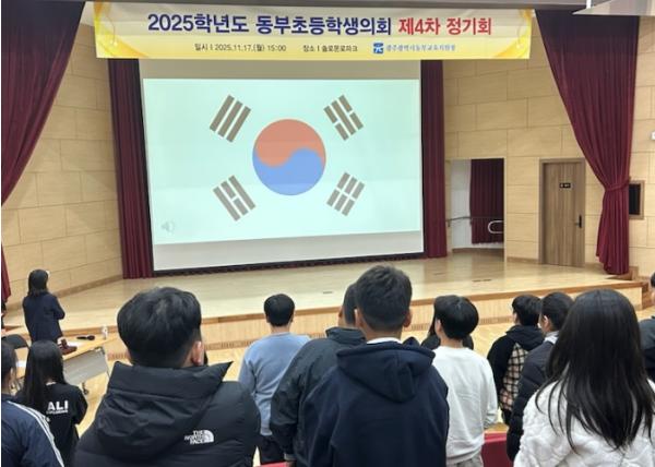 [중앙뉴스라인, 전은희기자] 광주광역시동부교육지원청은 17일 솔로몬로파크에서 ‘2025학년도 동부초등학생의회 제4차 정기회’를 개최했다.