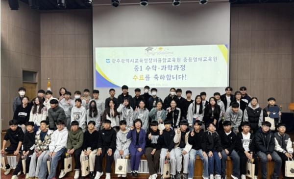 [중앙뉴스라인, 전은희기자] 광주광역시교육청창의융합교육원은 지난 15일 본원 대강당에서 중등영재교육원 중학생 141명과 학부모들이 참석한 가운데 ‘2025학년도 영재교육원 수료식’을 개최했다.