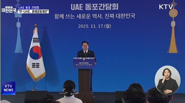 이 대통령은 활력이 넘치는 UAE 동포 사회를 만나게 된 것에 반가움을 표하며, "첨단 과학기술로 새로운 세상을 열어가는 UAE는 대한민국의 중동, 아랍 지역 진출을 위한 '베이스캠프'로서, 양국이 함께 새로운 공동 번영의 길을 확실히 열어갈 것"이라고 했다.