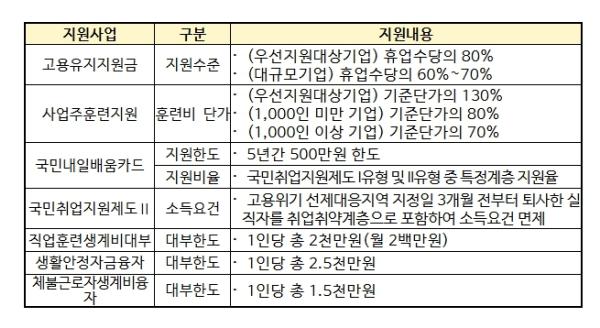 이번 결정으로 포항시와 서산시 내 재직자·실업자·자영업자는 국민내일배움카드의 지원 한도와 수강료 지원율, 직업훈련 생계비 대부의 한도가 모두 상향되고, 실업자는 소득 수준과 관계없이 국민취업지원제도에 참여할 수 있게 된다. 또한 사업주는 고용유지지원금과 사업주 직업능력개발 지원에서 지원율을 우대받게 된다.