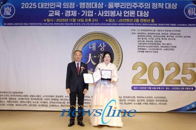 [중앙뉴스라인 = 전은희 기자] 우리 고유의 예식문화를 보존하고 현대사회에 맞게 재해석하며 전통문화의 가치를 널리 알린 백종희(白宗熙) 명인이 지난 11월 14일 광주 JS컨벤션홀에서 열린 ‘제9회 대한민국 의정대상 및 풀뿌리 민주주의 정착대상 시상식’에서 ‘2025 대한민국 전통문화 대상’ 전통문화 계승 부문을 수상했다.