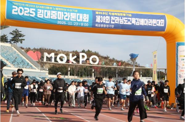 [중앙뉴스라인, 김민수기자] 전라남도교육청은 23일 목포종합경기장 일원에서 약 1만여 명이 참여한 가운데 열린 ‘제96주년 학생독립운동기념 제38회 전라남도교육감배 마라톤대회·2025 김대중 마라톤대회’가 성황리에 마무리됐다고 밝혔다.