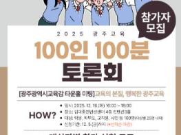 [중앙뉴스라인, 전은희기자] 광주시교육청시민협치진흥원은 오는 12월 16일 김대중컨벤션센터 4층 컨벤션홀에서 ‘2025 광주교육 100인 100분 토론회’를 개최한다.