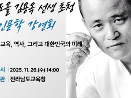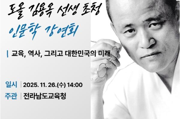이번 강연은 전남 초․중․고 교직원과 학부모 등 약 500명을 대상으로 진행되며, 인공지능(AI) 시대에 교사가 가져야 할 철학과 미래교육의 방향을 인문학적 관점에서 깊이 있게 짚어볼 예정이다.