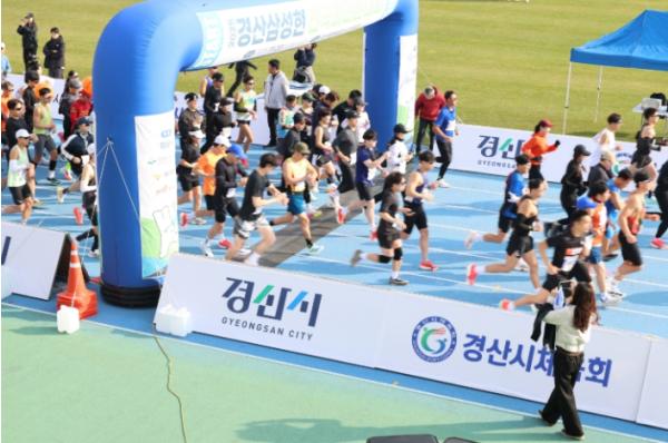 [중앙뉴스라인, 우제헌기자] 경산시는 23일 경산시민운동장에서 전국 마라톤 동호인 900여 명이 참가한 가운데 '시민 건강과 지역발전이 함께 뛰는 마라톤 축제'라는 슬로건으로“2025 경산 삼성현 전국 마라톤대회”를 개최했다.