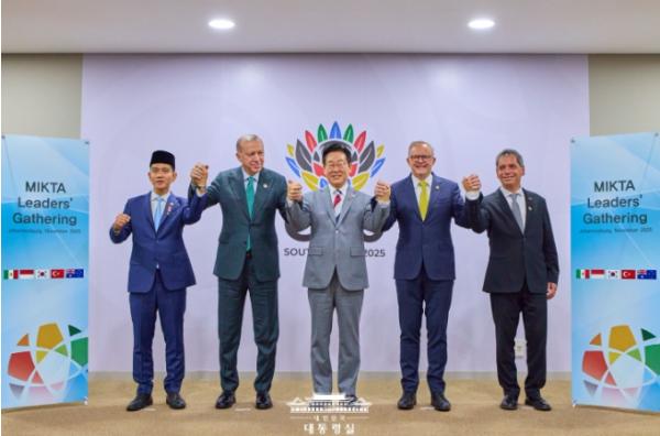 [중앙뉴스라인, 우제헌기자] 주요 20개국(G20) 정상회의 참석을 위해 남아프리카공화국을 방문한 이재명 대통령은22일(현지시간) 오후 우리나라, 멕시코, 인도네시아, 튀르키예, 호주 5개국으로 구성된 믹타(MIKTA) 회원국 정상들과 회동했다.