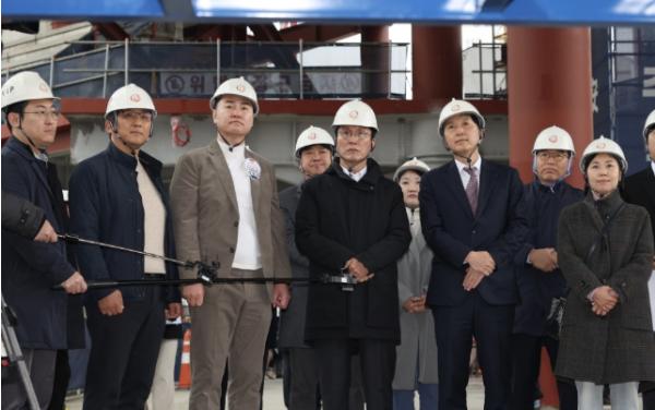 김 총리는 현장 도착 후 안전모를 착용하고, 직접 호이스트(건설용 리프트)를 탑승하여 건립 현장 곳곳을 꼼꼼히 점검했다.