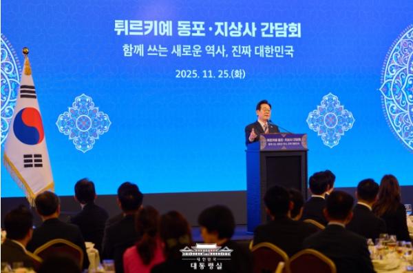[중앙뉴스라인, 우제헌기자] 이재명 대통령은 순방 일정을 마치고 귀국하기에 앞서 25일(현지시간) 튀르키예 앙카라에서 동포·지상사 간담회를 개최했다.