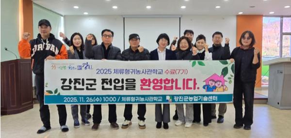 [중앙뉴스라인, 전은희기자] 강진군은 지난 11월 26일 체류형귀농사관학교 7기 교육생 수료식을 열고, 9개월간의 체류·교육 과정을 성공적으로 마친 교육생들이 강진에서의 새로운 정착 단계에 들어섰다고 밝혔다.