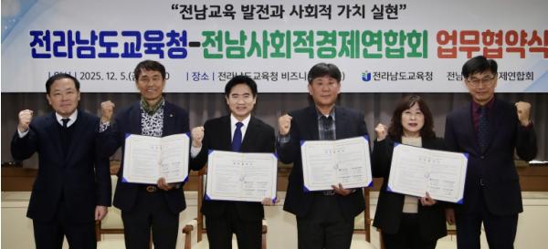 전남교육청은 이번 협약을 계기로 지역에서 활동하는 전남사회적경제연합회가 교육의 동반자로서 학생들이 지역에서 배우고 성장할 수 있는 협력 모델이 되기를 기대한다.