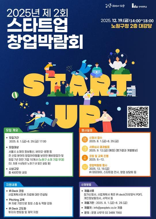 행사 당일에는 총 20개 규모의 전시·홍보 부스도 운영돼, 스타트업과 예비 창업자들의 기술력과 제품을 직접 체험할 수 있다. 더불어 1:1 창업 상담 및 투자자 매칭 프로그램을 통해 참가 기업들이 사업 방향을 구체화하고 실질적인 투자 기회를 모색할 수 있도록 지원한다.