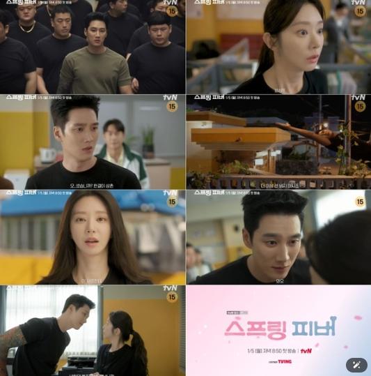 2026년 1월 5일(월) 첫 방송 예정인 tvN 새 월화드라마 ‘스프링 피버’(연출 박원국 /극본 김아정 /기획 CJ ENM STUDIOS /제작 본팩토리)는 찬바람 쌩쌩부는 교사 윤봄(이주빈 분)과 불타는 심장을 가진 남자 선재규(안보현 분)의 얼어붙은 마음도 녹일 봄날의 핫!핑크빛 로맨스다.