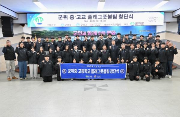 군위군은 12일 군위군청 대회의실에서 ‘군위중·고등학교 플래그풋볼 팀 창단식’을 개최했다고 밝혔다. 이날 창단식에는 김진열 군위군수를 비롯해 김기선 군위중학교장, 이현정 군위고등학교장, 대한미식축구협회 관계자 및 선수단 등 70여 명이 참석해 지역 스포츠의 새로운 역사를 축하했다.