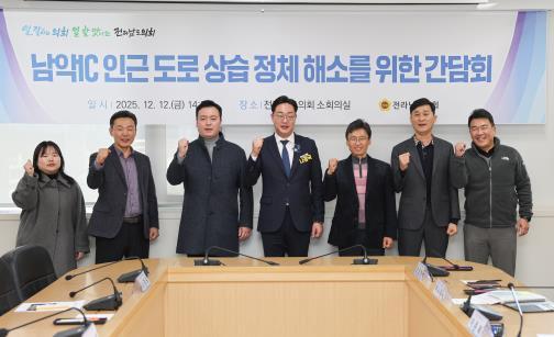 [중앙뉴스라인, 김민수기자] 나광국 전남도의원(무안2·더불어민주당)이 12월 12일 도의회 소회의실에서 주최한 간담회를 통해 무안군 남악오룡신도시 주민의 숙원인 남악 IC 인근 교통체증의 구체적 해결 방안과 시기가 논의됐다.
