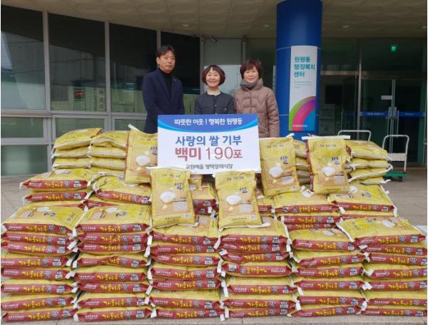 교원예움 평택장례식장은 매년 원평동 지역사회를 위해 꾸준히 쌀을 기부하며 이웃사랑을 실천하고 있으며, 올해도 원평동 지역사회보장협의체와 협력하여 취약계층을 위한 나눔에 동참했다.