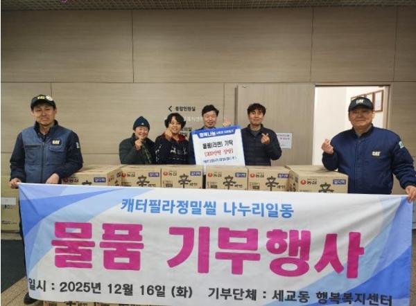 최원종 세교동장은 “매년 잊지 않고 어려운 이웃을 위해 기부하신 ㈜캐터필라정밀씰 ‘나누리’봉사단체 관계자분들에게 깊이 감사드리며, 소중한 마음이 꼭 필요한 이웃들에게 잘 전달되도록 하겠다”고 감사 인사를 전했다.
