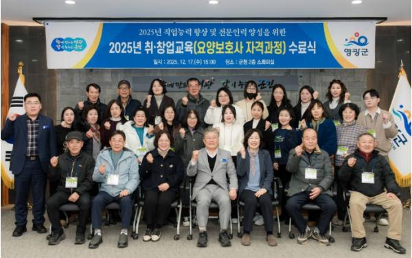 [중앙뉴스라인, 김민수기자] 영광군은 12월 17일, 영광군청 소회의실에서 2025년 취·창업교육 요양보호사 양성과정 수료식을 개최하고, 지역 맞춤형 직업교육을 통한 일자리 창출 성과를 공유했다.