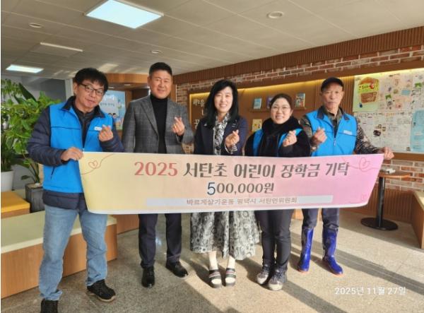 전달식에서 최미향 서탄초등학교 교장은 “이번 장학금은 경제적 도움을 넘어 지역사회가 함께하고 있다는 마음을 전해주는 뜻깊은 지원”이라며 “뜻을 모아주신 바르게살기위원회에 진심으로 감사드린다”고 전했다.