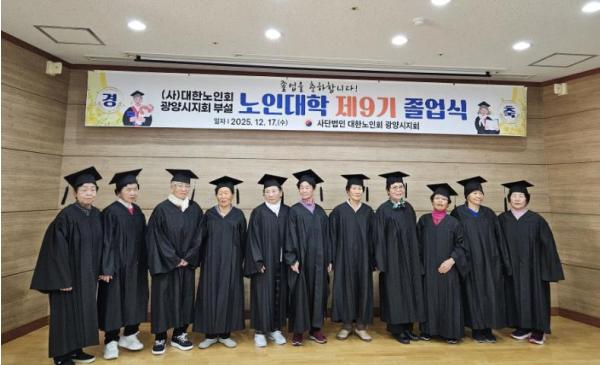 행사에는 졸업생과 가족을 비롯해 대한노인회 광양시지회 임원, 유관기관 관계자 등 100여 명이 참석해 졸업의 기쁨을 함께 나누며 의미를 더했다.