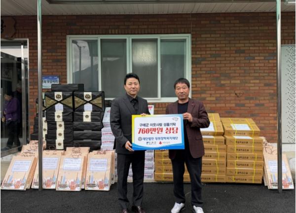[중앙뉴스라인, 김민수기자] 전남 구례군은 12월 19일, (재)정원장학복지재단(이사장 김용만)에서 토지면 신촌마을 주민과 관내 가정위탁세대를 위해 쌀(20kg), 돼지고기 세트, 생필품 세트, 라면 등 총 760만 원 상당의 물품을 전달했다고 밝혔다.