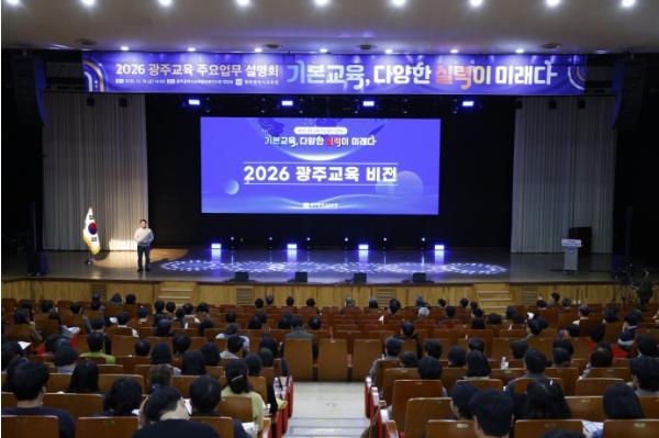 시교육청은 19일 광주광역시교육청교육연수원 대강당에서 학교장 및 주요 기관장 등 1천여 명이 참석한 가운데 ‘2026 광주교육 주요업무 계획 설명회’를 개최했다.