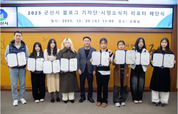 [중앙뉴스라인, 김용범기자] 군산시가 올 한 해 현장 곳곳을 발로 뛰며 생생한 소식을 전한 ‘2025 블로그기자단과 시정소식지 리포터 해단식’을 20일 시청에서 개최했다.
