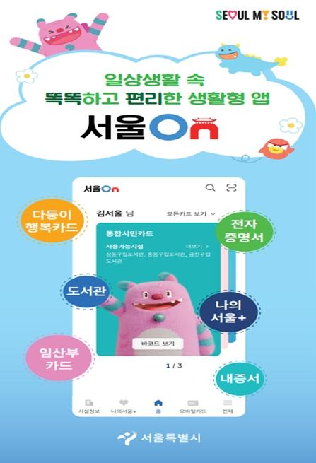 한편 오는 1월 ‘서울온’ 정식 서비스가 시작되면서 기존 서울시민카드 앱은 12월 31일까지 이용할 수 있다. 1월 1일부터는 시민카드 앱에서 회원정보 이관 동의, 서울온 설치 안내 기능만 제공되며 통합 앱 ‘서울온’에 가입하면 기존 시설 이용 이력 등이 유지된다.