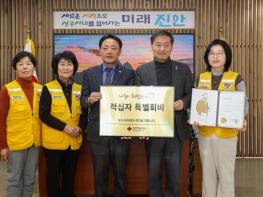 [중앙뉴스라인, 김용범기자] 진안군은 22일 군수실에서 ‘2025년 인도주의 활동을 위한 적십자 특별회비’를 대한적십자사에 전달했다. 전달식에는 대한적십자사 전북특별자치도지사 김홍식 회장, 진안지구협의회 김정숙 회장 등 관계자 7명이 참석했다.