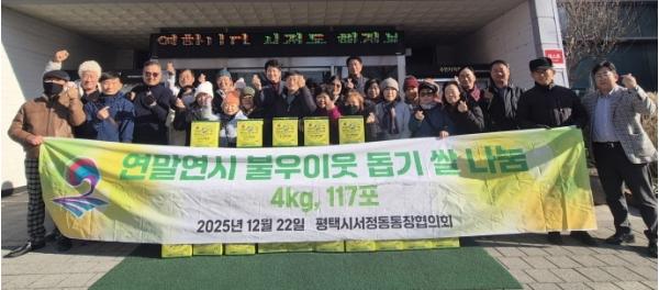 [중앙뉴스라인, 김영환기자] 평택시 서정동 통장협의회는 지난 22일 연말연시를 맞아 어려운 이웃과 취약계층에 대한 사랑 나눔을 실천하고자 연말연시 불우이웃 돕기 쌀 나눔 행사를 진행했다.