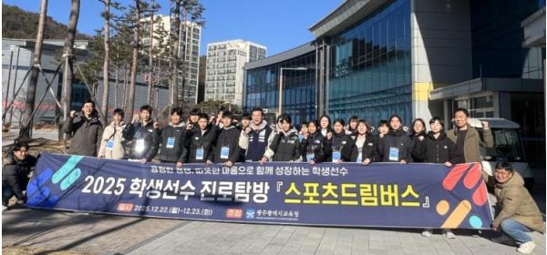 [중앙뉴스라인, 전은희기자] 광주시교육청은 22~23일 광주체육중학교 학생 선수 20명이 참여한 가운데 ‘2025 학생선수 진로탐방 스포츠 드림버스’를 운영했다.