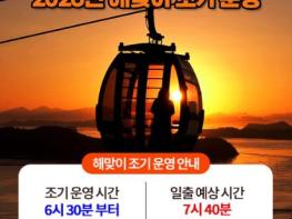 전남 해남, 진도지역의 대표 관광지인 명량해상케이블카는 2026년 1월 1일 새해 해맞이를 위해 평소보다 이른 오전 6시 30분부터 케이블카 조기 운영에 나선다.