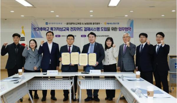 [중앙뉴스라인, 전은희기자] 광주시교육청은 23일 시교육청 특수교육지원센터에서 NH농협은행 광주본부와 ‘특수교육대상학생 방과후 특기·적성지원 전자카드 결제시스템 도입을 위한 업무협약’을 체결했다.