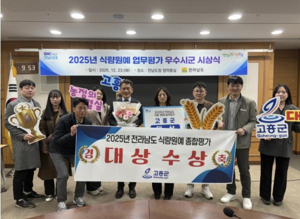고흥군, 2025년 전라남도 식량·원예 평가 대상 쾌거