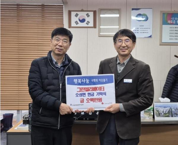 [중앙뉴스라인, 김영환기자] 평택시 오성면에 있는 그린엘리베이터가 지난 24일 오성면 행정복지센터를 방문해 저소득층 및 취약계층을 위한 이웃돕기 성금 5백만 원을 기부했다.