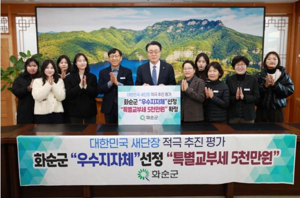 [중앙뉴스라인, 김민수기자] 화순군은 지난 24일 행정안전부가 주관한 ‘대한민국 새단장’ 캠페인 추진실적 평가에서 우수 지자체로 선정돼 특별교부세 5천만 원을 확보했다고 밝혔다.